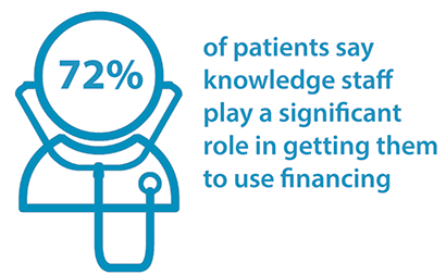 Associates who understand the medical provider financing program can make a real difference. Thirty-five percent of patients prefer to learn about financing options through team service associates, and 72 percent of patients say knowledgeable service staff played an important role in getting them to use financing.
